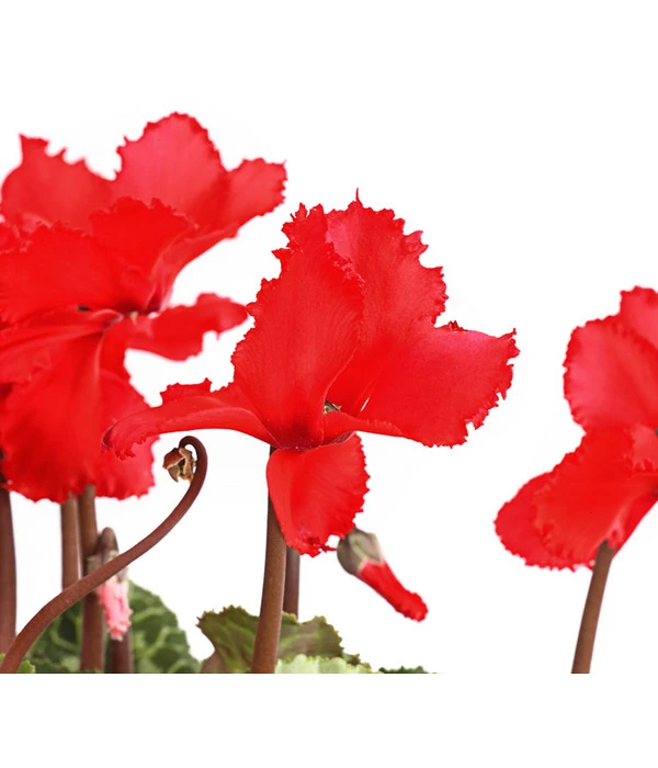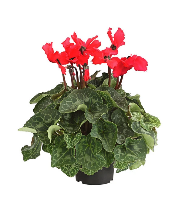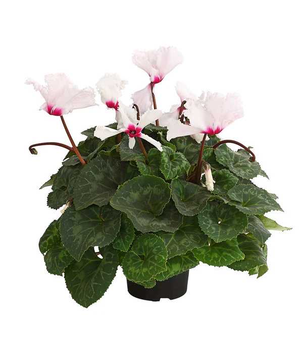 Das Zimmer-Alpenveilchen, oder auch Persisches Alpenveilchen genannt, gehört zu den bekanntesten Zimmerpflanzen, das lange Zeit als altmodisch und ‚Omas Liebling‘ bezeichnet wurde. Das hat sich längst geändert, denn die farbenfroh blĂĽhenden Pflanzen mit groĂźen herzförmigen Blättern verbreiten einen fröhlichen Charme und ist beliebt wie eh und je. Die auffälligen BlĂĽten sitzen an langen Stielen ĂĽber der Pflanze. Die Farbenvielfalt der Alpenveilchen reicht dabei von WeiĂź ĂĽber Rosa- und Rottöne bis hin zu Lila. Eine echte Besonderheit unter den Alpenveilchen sind die Pflanzen mit den gewellten BlĂĽten. Diese fallen aber nicht nur durch ihre wunderschöne verspielte BlĂĽtenform aus der Reihe, sie sind noch dazu besonders groĂź und sehr farbintensiv.