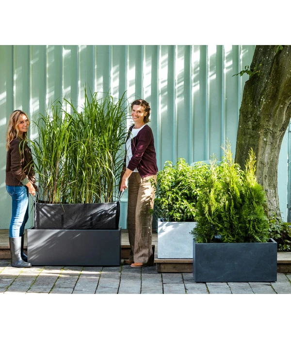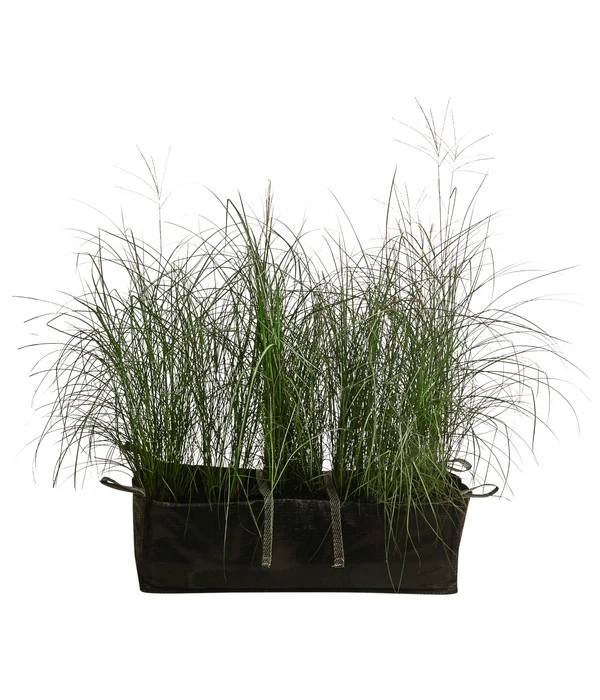 Das Chinaschilf ‘Gracillimus‘ kommt nicht in einem Topf, sondern in einer rechteckigen Pflanztasche zu Ihnen, was das Handling besonders angenehm macht. Denn die Pflanztasche hat zwei stabile Tragegriffe, mit denen Sie die Pflanzen einfach und bequem in einen Pflanzkasten setzen und bei Bedarf – zum Beispiel für Pflegemaßnahmen – auch wieder herausnehmen können.