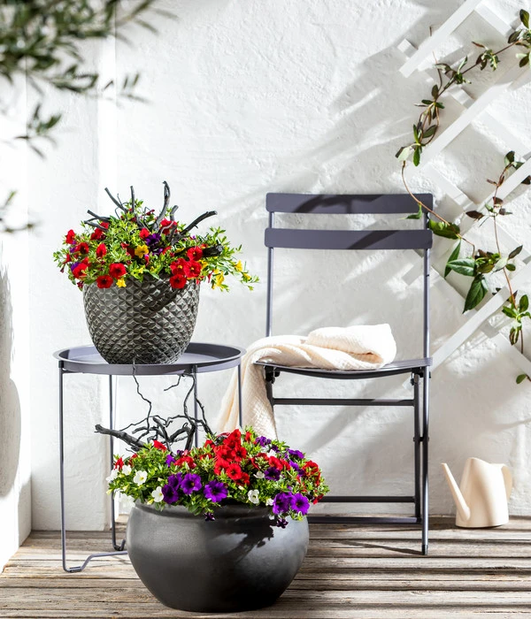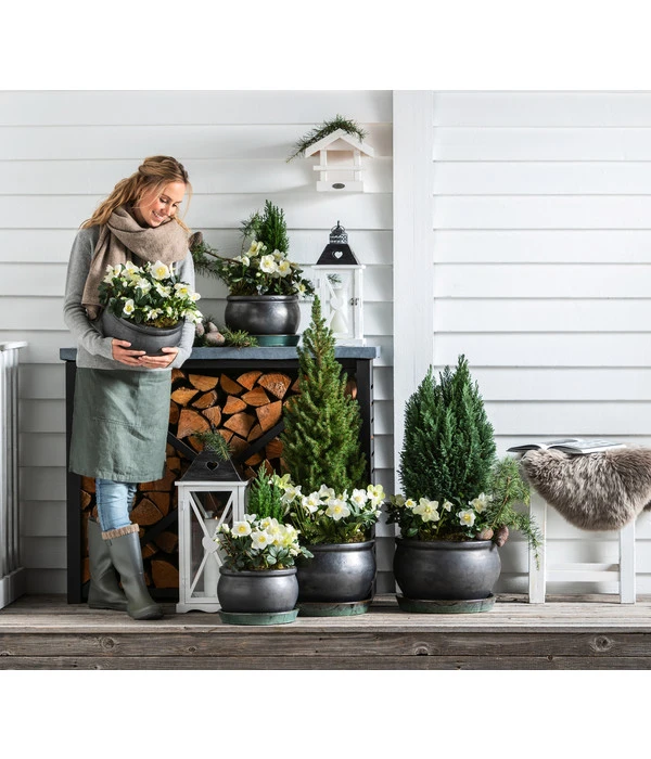 Aufgrund seiner etwas flacheren, weiten Form eignet sich der stilvolle Pflanzkübel nicht nur für farbenprächtige Blumen, sondern auch für ausladende Gewächse, die in schlankeren Gefäßen oft instabil wirken. Darin machen sich beispielsweise junge Feigenbäumchen hervorragend und schmücken so Ihre Außenanlage und Ihren Balkon. Mit einem Arrangement, bestehend aus mehreren Töpfen, die Sie harmonisch bepflanzen, schaffen Sie eine grüne Insel in Ihrem Heim oder Ihrem Wintergarten. Auf Ihrem Balkon lassen sich darin sehr dekorativ beispielsweise eigene Tomaten kultivieren, die ausgesprochen hübsch anzusehen sind und Fliegen vertreiben. Außerdem schmecken diese, wenn man sie direkt von der Staude isst, ausgesprochen lecker. Stellen Sie den Topf auf sogenannte „Füßchen“, um den Wasserabzug zu gewährleisten, vermeiden Sie unangenehme Staunässe und die damit verbundenen Folgen für die Gewächse. Der glasierte Dehner Keramik-Topf Bavaria schmückt in jedem Fall Ihr reizvolles Ambiente und bietet Ihnen viele Gestaltungsmöglichkeiten im Innen- wie im Außenraum.