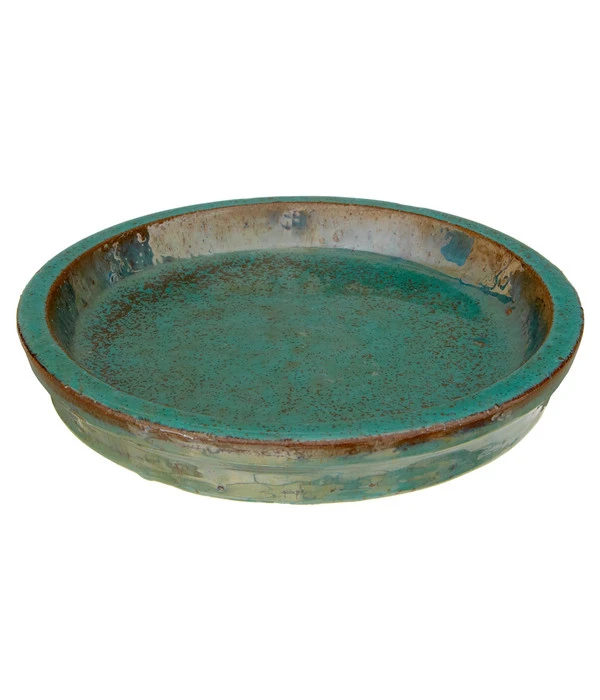 Der Untersetzer aus glasierter Keramik wurde handgefertigt. Jedes Stück ist ein Unikat und unterscheidet sich in kleinen Details von den anderen. Das ansprechende rustikale Design verleiht dem Keramik-Untersetzer, in runder Form und glasiert, einen ganz besonderen Charme. Wenn der Untersetzer unter einen Pflanztopf mit Wasserablaufloch gestellt wird, kann das überschüssige Wasser in den Untersetzer abfließen. Hierdurch wird Staunässe vermieden, durch die es von der Wurzel aus schimmeln könnte und sich in der Folge Fäulnis bilden würde. Der Keramik-Untersetzer, in runder Form und glasiert, ist frostbeständig und kann auch im Winter problemlos im Freien bleiben. Dabei ist es natürlich notwendig, die Pflanzen winterfest zu machen. Untersetzer für Pflanztöpfe sind vor allem in der Wohnung ausgesprochen wichtig, da sonst das überschüssige Wasser auf den Boden fließen und lästige Wasserflecken produzieren würde.