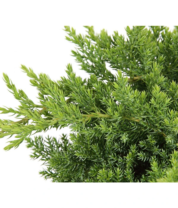 Für alle, die einen außergewöhnlichen Bodendecker suchen, den man nicht in jedem Nachbargarten sieht, könnte der Japanische Kriechwacholder ‚Nana‘ die richtige Wahl sein. Der Zwergstrauch hat einen dichten Wuchs mit extrem niederliegenden Zweigen, die sich ganz flach und mattenartig über dem Boden ausbreiten. Darüber hinaus bilden die blaugrün schimmernden Nadeln einen interessanten Farbkontrast zu den grünen Blättern, die die anderen Pflanzen im Beet zeigen. Im Juni erscheinen an den Trieben unscheinbare gelbe Blüten, die sich in seltenen Fällen in blaue Beerenzapfen verwandeln. Obwohl dieser Bodendecker schon durch seine aparte Optik überzeugt, kommt er trotzdem seinen praktischen Aufgaben als perfekter „Unkrautunterdrücker“ gewissenhaft nach, so dass Sie dort, wo er wächst, vom lästigen Unkrautjäten befreit sind.