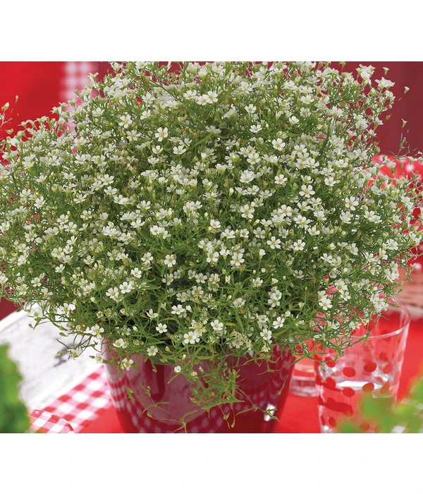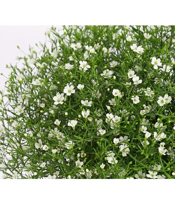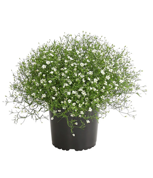 …ist das Gypsophila oftmals als Tischschmuck oder in Braut- oder Rosensträußen, denn die Blütentriebe sind äußerst gut zum Schnitt geeignet. Oder binden Sie einen Trockenstrauß zusammen mit Rosen oder Hortensien. Das wunderschöne Schleierkraut eignet sich natürlich ebenso hervorragend für Bauern- oder Naturgärten, in kombinierten Anpflanzungen in Rabatten oder im Kübel.