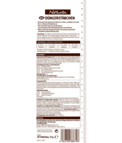 Wenn Sie Ihren Pflanzen zu gesundem Wachstum und einer idealen Nährstoffzufuhr verhelfen möchten, stellen die Naturen® Bio Düngestäbchen eine exzellente Wahl dar. Die Stäbchen bestehen zu 100 % aus natürlichen Düngerwirkstoffen und enthalten u. a. Algenextrakt sowie wertvolle Huminsäuren. Das sind wichtige Bestandteile eines Düngemittels, denn sie regen das Wachstum der Pflanzen an und fördern ihre gesunde Entwicklung durch eine optimierte Nährstoffaufnahme. Außerdem tragen sie zu einem erhöhten Wasserhaltevermögen und einer verbesserten Bodenstruktur bei. Versorgen Sie Ihre Balkon-, Terrassen- oder Zimmerpflanzen mit allem, was diese für ein prächtiges Gedeihen benötigen, und profitieren Sie von der bis zu 3 Monate andauernden Düngewirkung der Bio Düngestäbchen von Naturen®!