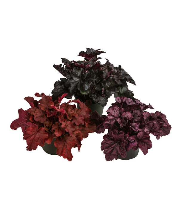 Je 1 x Heuchera ‘Boysenberry‘, Heuchera ‘Black Pearl‘, Heuchera ‘Forever Purple‘