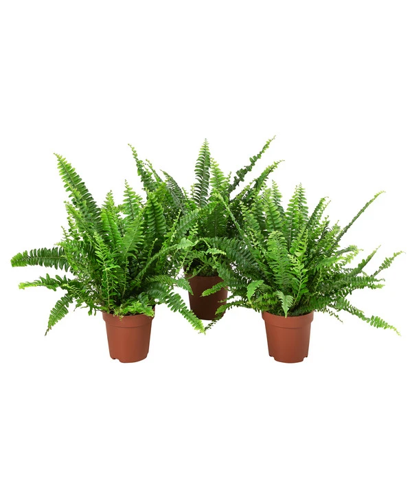 Er schmückt sich mit filigran gefiederten Wedeln, die sich in ein strahlendes Hellgrün gekleidet haben – kein Wunder, dass ein Schwertfarn in jedem Raum als Blickmagnet wirkt. Außerdem lässt er seinen üppigen Wedel-Schmuck an den Spitzen elegant überhängen, was seinen dekorativen Reiz noch erhöht. Deshalb wissen alle Pflanzen-Fans, dass man mit einem Schwertfarn immer richtig liegt, wenn es um gezielte, hellgrüne Akzente im Raum geht. Ursprünglich stammen Schwertfarne aus den tropischen und subtropischen Regionen der Erde, wo sie meist als Aufsitzer auf anderen Pflanzen wachsen. Bei Ihnen braucht die Zimmerpflanze aber natürlich keine Pflanze als Standort, vielmehr kommt sie wegen des malerisch überhängenden Wuchses besonders schön in Ampeln zur Geltung. Lassen Sie den Schwertfarn, den wir Ihnen hier im 3er-Set anbieten, deshalb gleich Ihr Wohnambiente mit seinen leuchtend hellgrünen Wedeln bereichern – entweder jede Pflanze an einem anderen Ort oder alle drei zusammen als schwebende grüne Insel!