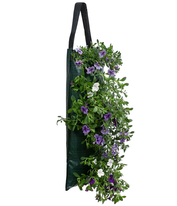 Der Wandhänger mit Minihängepetunien besteht aus einem praktischen Pflanzsack inklusive Substrat, in den die drei Petunien bereits eingesetzt sind. Und weil der Wandhänger mit Minihängepetunien außerdem mit einem Gießtrichter ausgestattet ist, können Sie mit einem Gießvorgang gleich alle drei Pflanzen wässern. Durch diese neue Form der Hanging Baskets eröffnen sich Ihnen auch ganz neue Deko-Möglichkeiten. Schmücken Sie mit dem Wandhänger mit Hängepetunien Wände und Zäune, Pfosten und Pergolen und genießen Sie den Anblick der farbenfrohen Blütenkaskaden.