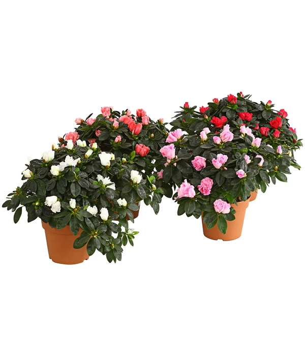 Auf der Fensterbank herrscht gähnende Leere? Auf der Tafel fehlt ein farbiger Hingucker? Die Küche heischt nach etwas Neuem? Nichts leichter als das: Mit nur einer Azalee stellen Sie eine geballte Ladung Blüten auf den Tisch. Ob in Pink, Rosa, Rot oder Weiß – die Schönheit aus dem Fernen Osten ist nicht zu übersehen. Die dunkelgrün und glänzend belaubte Pflanze überzieht sich ganz und gar mit kleinen Rosen, welche mal üppig gefüllt, mal charmant gefranst oder sogar zweifarbig marmoriert sind. Jede Azaleen-Blüte ist einzigartig, doch zusammen sind sie umwerfend. Und das viele Wochen lang.